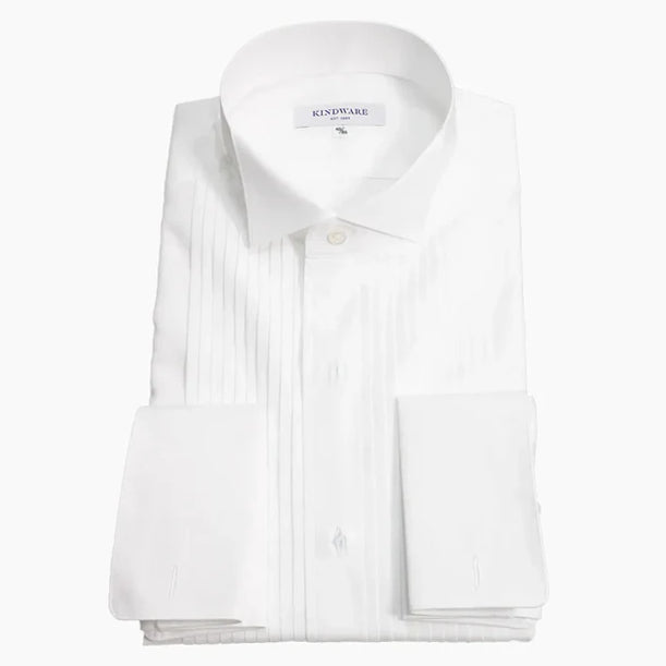 タキシードなどに合わせるドレッシーな胸プリーツスタッズ前立てシャツ。