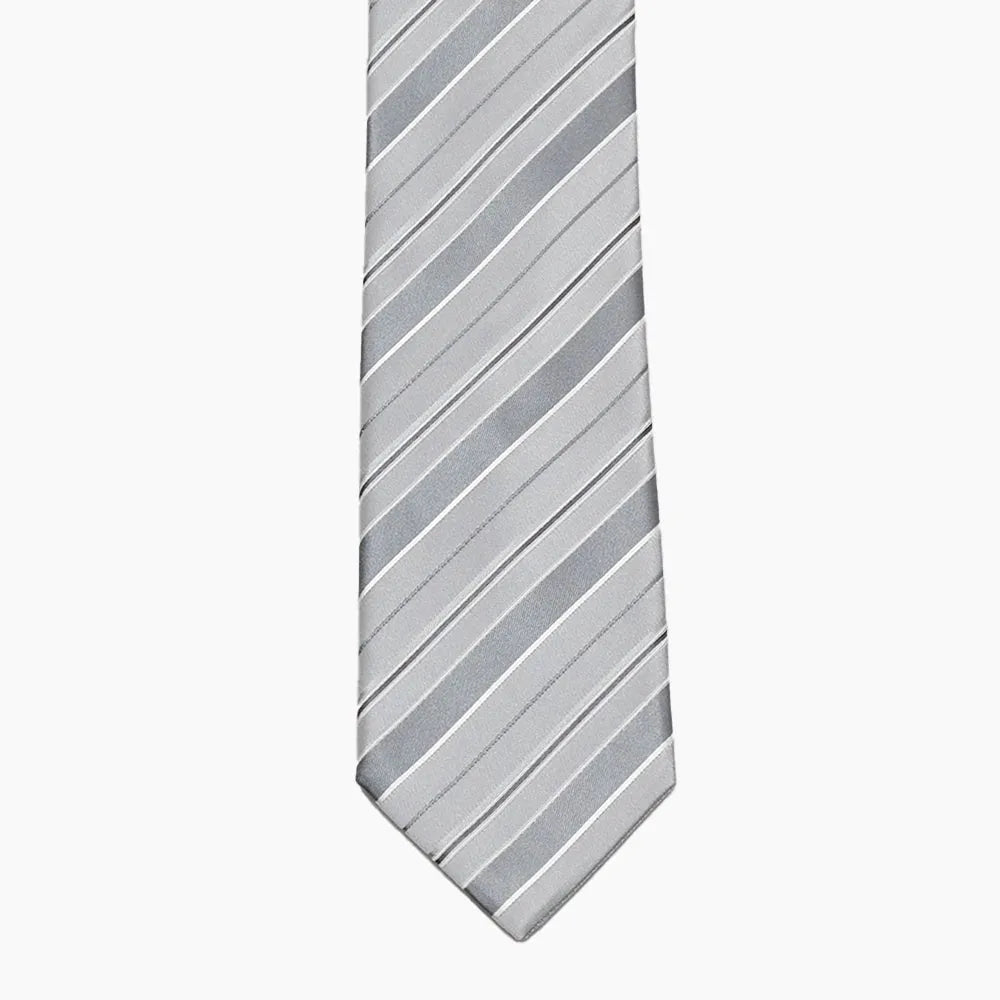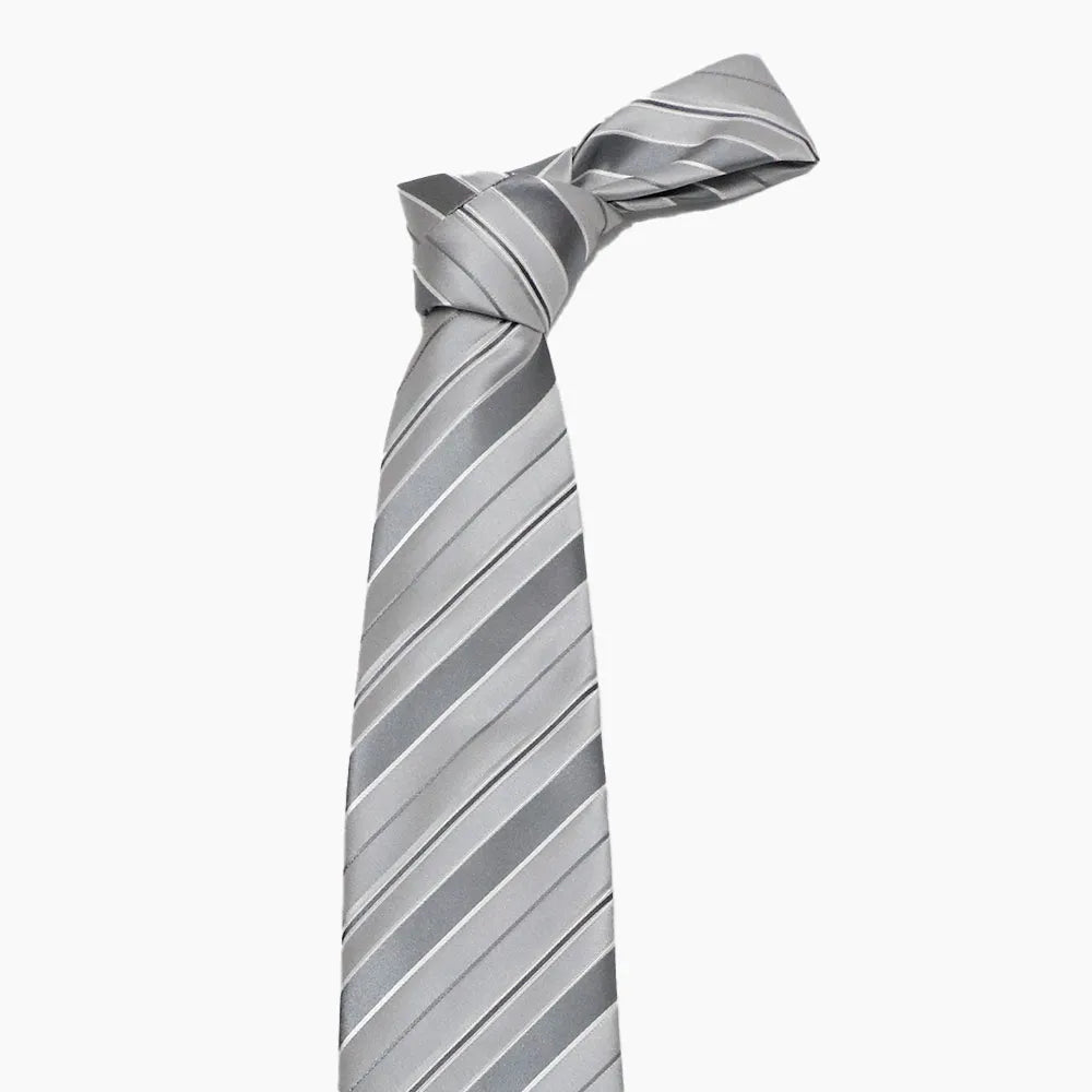 ブラックスーツに合わせるワンランク上の上質なシルバータイ。
